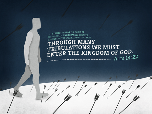 … strengthening the souls of the disciples, encouraging them to continue in the faith, and saying that through many tribulations we must enter the kingdom of God. — Acts 14:22