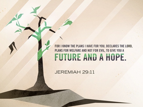 “For I know the plans I have for you, declares the Lord, plans for welfare and not for evil, to give you a future and a hope.” — Jeremiah 29:11